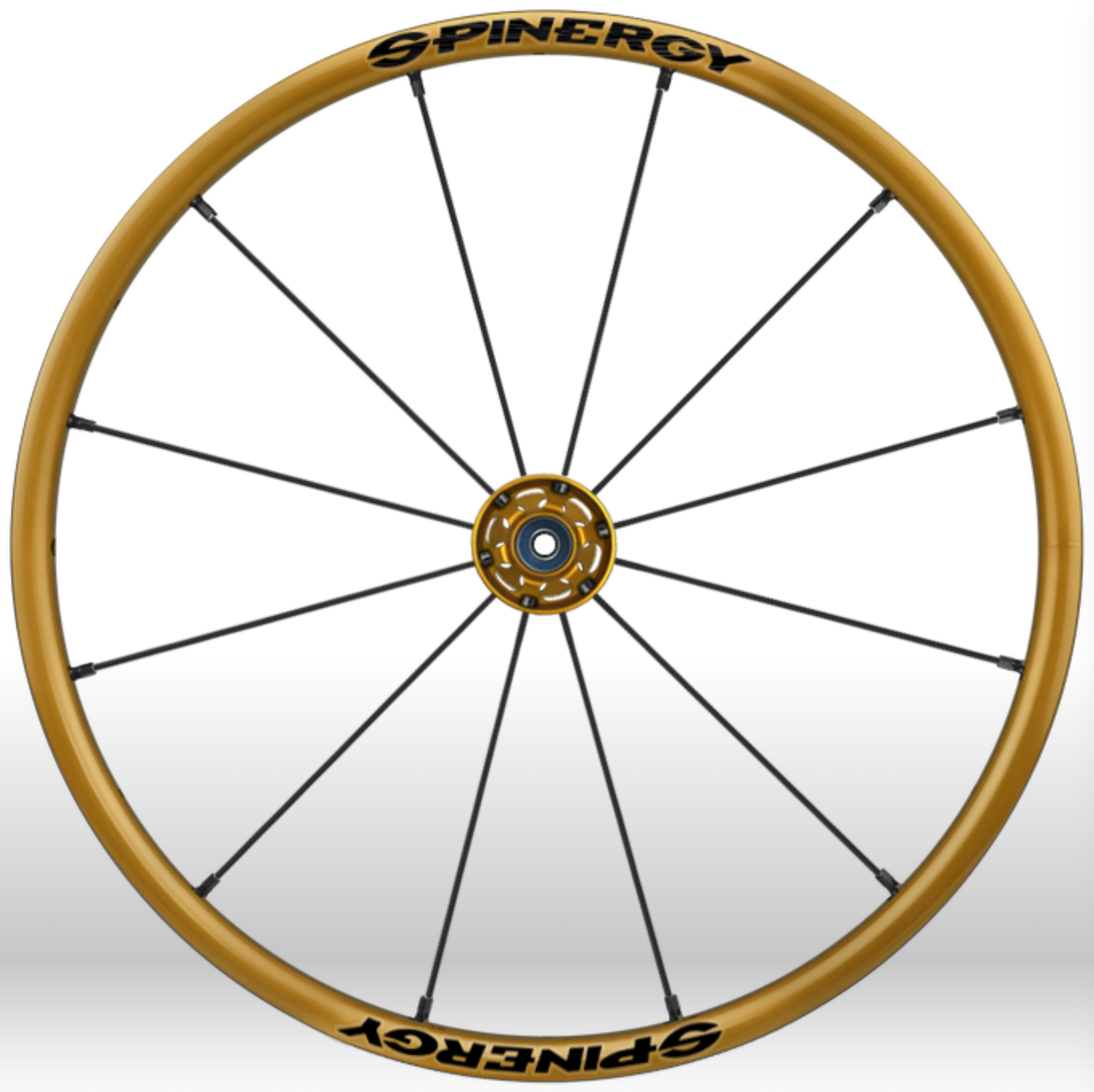 Shivoxx 24"x1" (540) Wheels with Primo V-Trak Orange Tires. Gold Pushrim, Aluminum/Carbon Hub and 1/2" Bearings