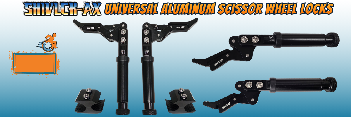 SHIVLCK-AX ADJUSTABLE Scissor Wheel Lock (Brakes). Fits Most Standard Wheelchairs. Black Color. Set of 2