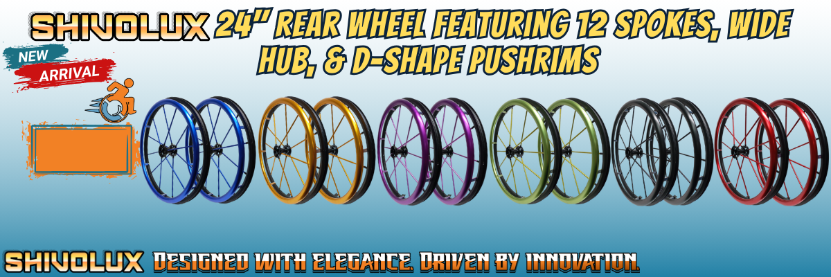 SHIVOLUX 24" (540mm) 12 Aluminum Spokes Wheel WIth Big Center Hub & Aluminum Pushrim. Set of 2