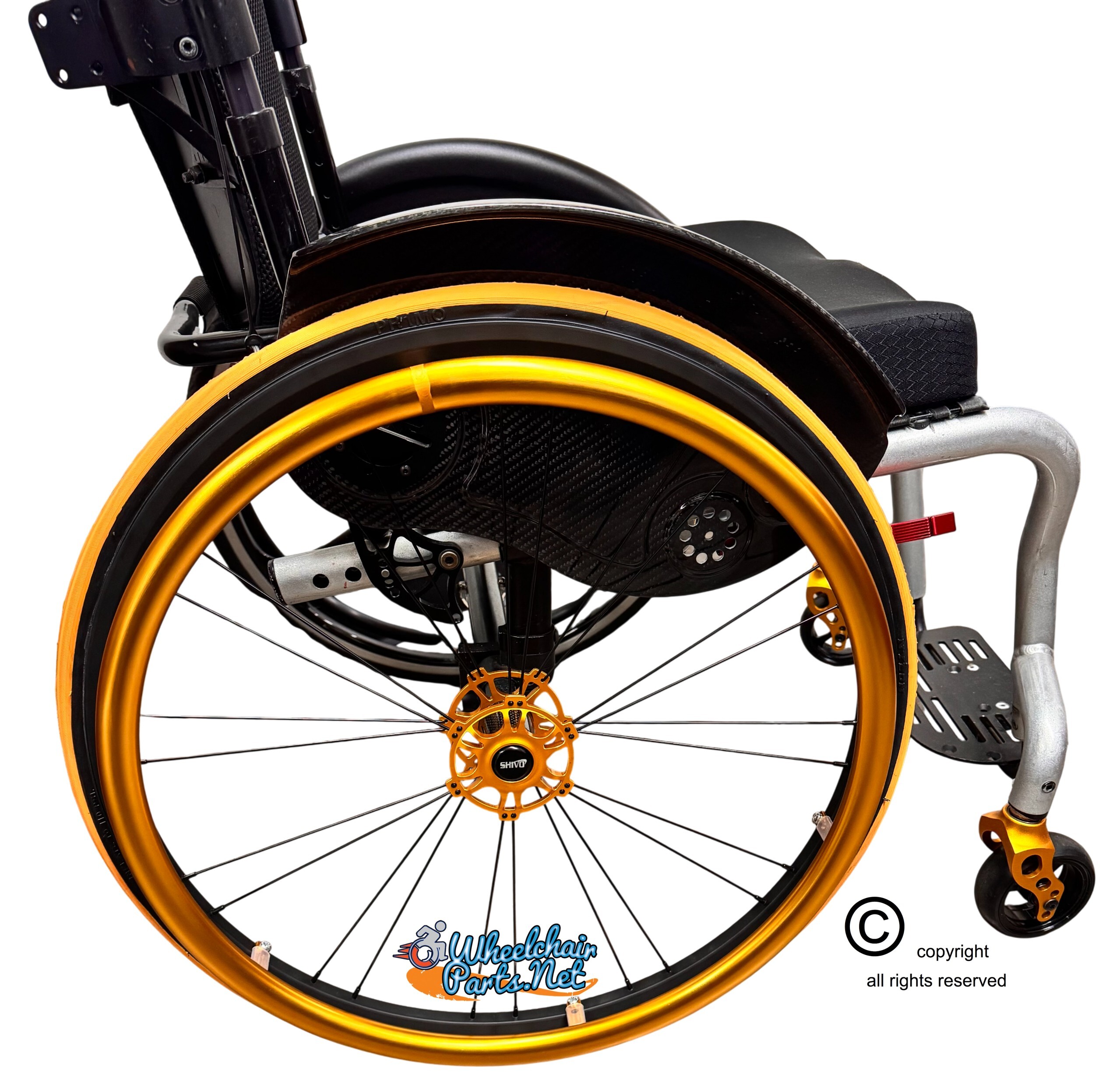 Quick view Shivo Mobility | sku: RW128-T400 Shivoxx 24"x1" (540) Wheels with Schwalbe Marathon Plus Tires. Gold Pushrim, Aluminum/Carbon Hub and 1/2" Bearings The SHIVOXX 24"x1" (540) Wheels are paired with Schwalbe Marathon Plus Tires, an Ergonomic Gold D-Shape aluminum pushrim and aluminum hub with a lightweight carbon fiber tube. It also includes ½” bearings and 24 black spokes. These wheels... MSRP: Now: $490.00 Add to Cart Compare Quick view Shivo Mobility | sku: RW128-NT Shivoxx 24" (540) Wheels with Gold Pushrim, Aluminum/Carbon Hub and 1/2" Bearings. NO Tires The SHIVOXX 24"x1" (540) Wheels are paired with an Ergonomic D-Shape aluminum gold pushrim and aluminum hub with a lightweigth carbon fiber tube. It also includes ½” bearings and 24 black spokes. Tires are not included. Price listed is for a... MSRP: Now: $425.50 Add to Cart Compare Compare Selected